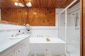 The remaining two bedrooms this property has to offer are all generous in size, both boasting built in robes and are serviced by the stunning central bathroom which features a larger shower and timber lined walls and ceiling.
