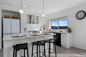 The formal lounge offers the perfect spot for movie nights or entertaining guests, while the open-plan kitchen, meals, and living zone serves as the true heart of the home. The gourmet kitchen boasts a range of premium inclusions: 40mm stone benchtops, vinyl wrap cabinetry, feature pendant lighting, 900mm stainless steel appliances, and a generous walk-in pantry. Overlooking the spacious family and dining areas, this space is designed for seamless everyday living and entertaining.