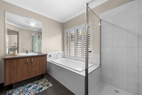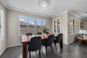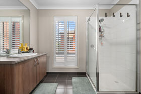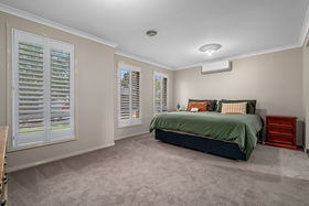 From the moment you arrive, you're greeted by a gorgeous façade and beautifully designed, low-maintenance landscaping. The concrete driveway leads to the double car garage with side access with access into the back yard enhances both style and practicality, instantly capturing attention and setting the tone for the craftsmanship showcased throughout the home. As you step inside you will be impressed by a neutral colour palette set a bright and welcoming tone throughout the home. To your left you will find the massive master bedroom featuring plantation shutters and its own reverse cycle split system, while also boasting a spacious walk-in robe and a stunning light filled ensuite.