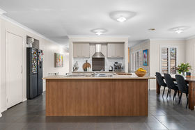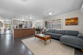 Moving down the hallway, the property opens up to showcase the enormous first living area, drenched in the natural light filtering through the plantation shutters, making this the perfect second living for the growing family. The heart of the home is the stunning kitchen, showcasing plenty of bench and cupboard space, gas cooktop and electric oven, dishwasher, while also seamlessly overlooks the open plan living and meals area, creating a bright and connected space for family life. The remaining two bedrooms are all generously sized and feature built-in robes and are serviced by a pristine central bathroom and separate toilet.